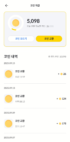- 현금화의 부재: 아쉽게도 코인을 직접 현금으로 인출하는 기능은 없습니다. 다만, 다양한 상품권이나 기프티콘으로 교환할 수 있어 실생활에 유용하게 쓸 수 있습니다.
